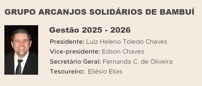 Fundado em 2013, o Grupo Arcanjos Solidários de Bambuí se consolidou ao longo dos anos como uma das principais forças de solidariedade e ajuda aos mais carentes da cidade de Bambuí, acumulando centenas de ações sociais que já beneficiaram inúmeras famílias em situação de vulnerabilidade. Desde sua criação, a proposta sempre foi unir voluntários em torno da ajuda ao próximo, transformando pequenos gestos em grandes mudanças na vida de quem mais precisa.
