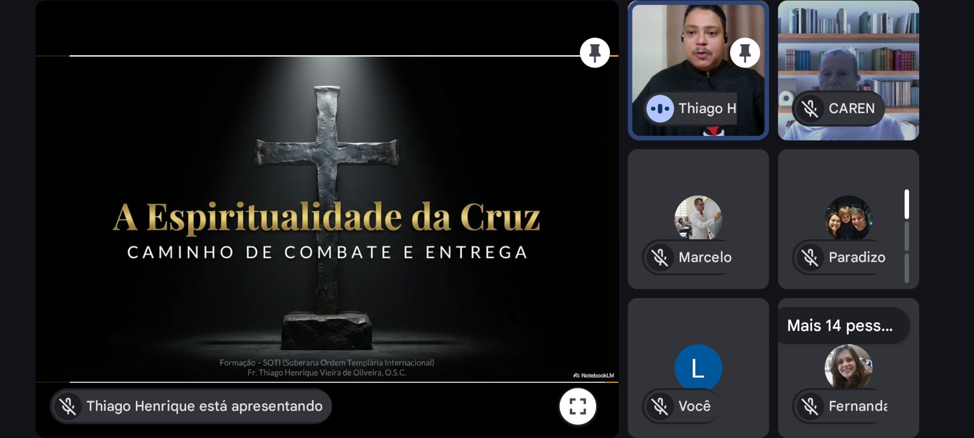 No dia 09 de março de 2026, a Soberana Ordem Templária Internacional (SOTI) realizou uma formação espiritual destinada a todos os integrantes da associação. O encontro ocorreu de forma virtual, por meio da plataforma Google Meet, e foi conduzido pelo Frade Crúzio Thiago de Oliveira O.S.C. que apresentou o tema "A Espiritualidade da Cruz – Caminho de Combate e Entrega".